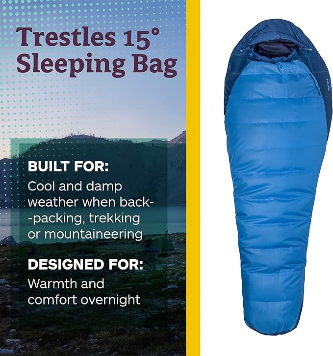 Marmot Men’s Trestles 15° Sleeping Bag | Insulated, Water-Resistant, Left-Zip, Cobalt Blue/Blue Night